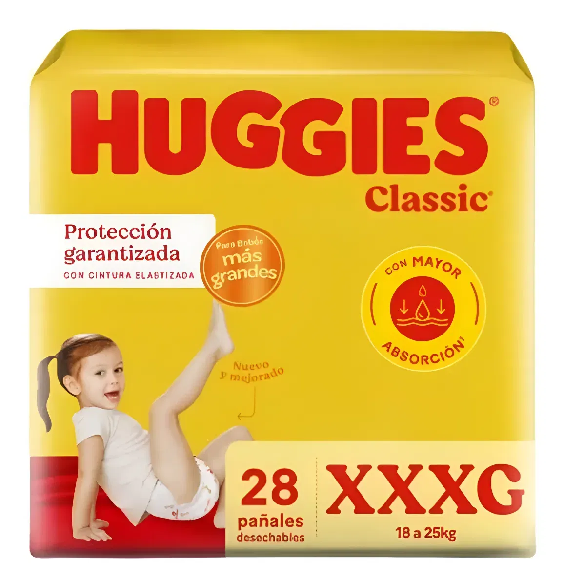 Pañales Huggies Classic XXXG ofrecen la protección y comodidad que tu bebé necesita.