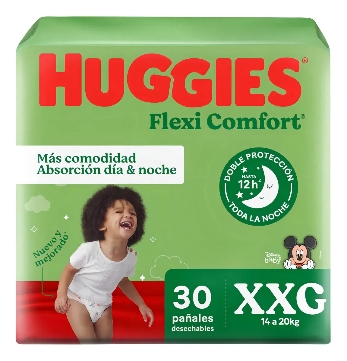 Pañales Huggies® Flexi Comfort Edición limitada proporcionan un ajuste óptimo y confort para el bebé. Incorporan la tecnología Xtra-Flex, con canales en forma de X que permiten una distribución del líquido más eficiente. La cubierta externa es suave al tacto y el sistema de ajuste flexible incluye barreras, orejas y cintura elastizada para adaptarse a los movimientos naturales del bebé. Los diseños incluyen a Tigger.